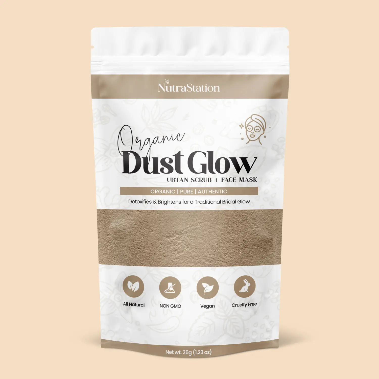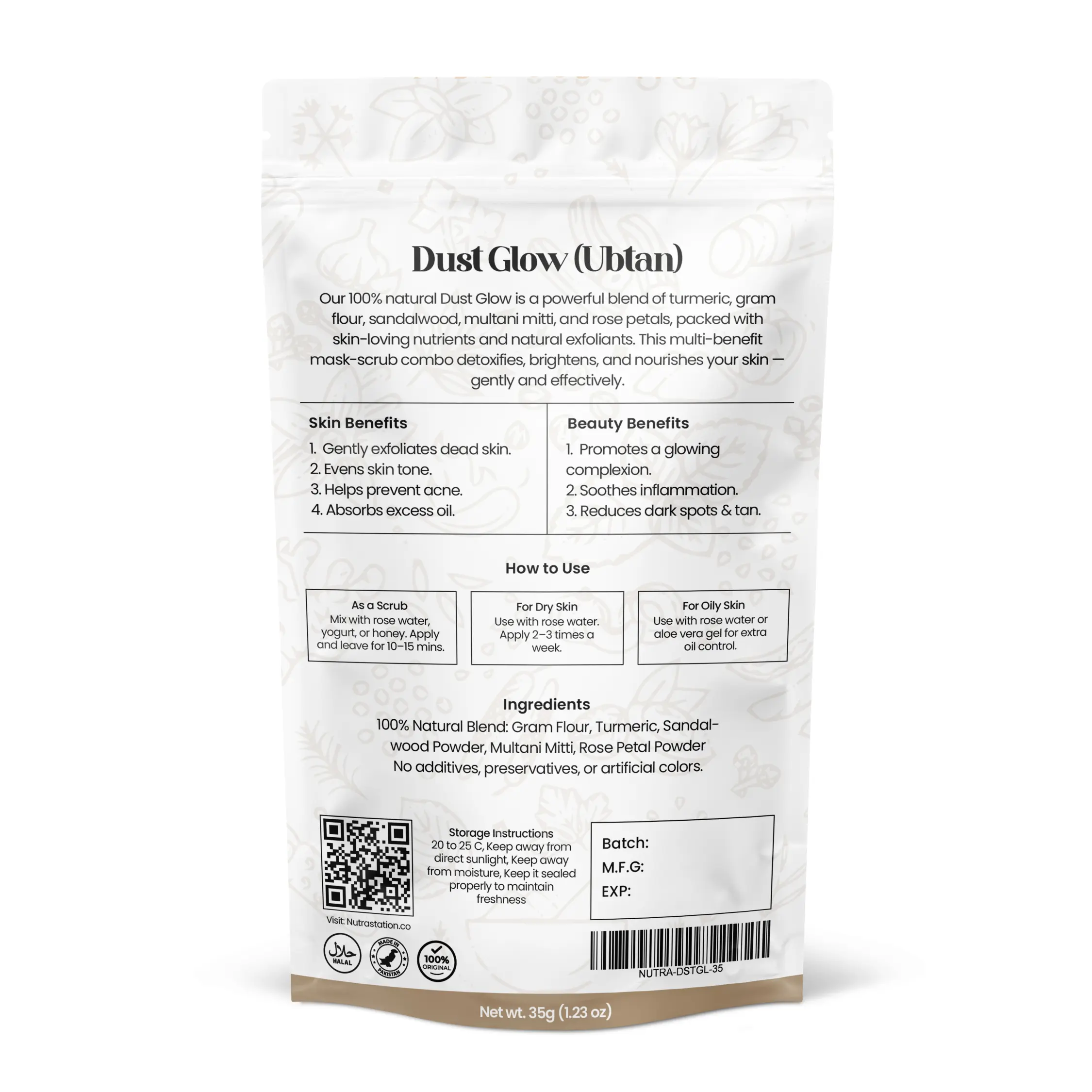 Nutra Station Dust Glow is a traditional herbal Ubtan blend that naturally brightens, cleanses, and nourishes the skin. A chemical-free skincare solution for a glowing and even-toned complexion.
