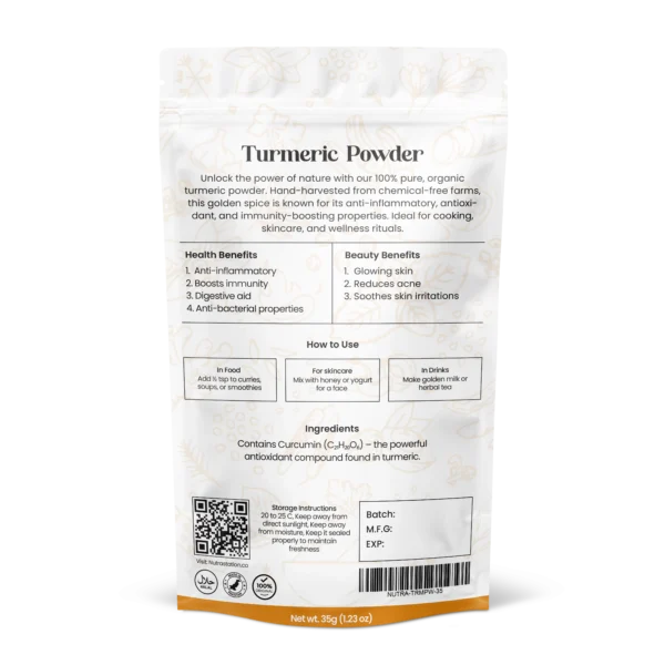 Nutra Station Turmeric Powder is 100% pure and natural, rich in curcumin — a powerful antioxidant known for its anti-inflammatory, healing, and immunity-boosting properties.